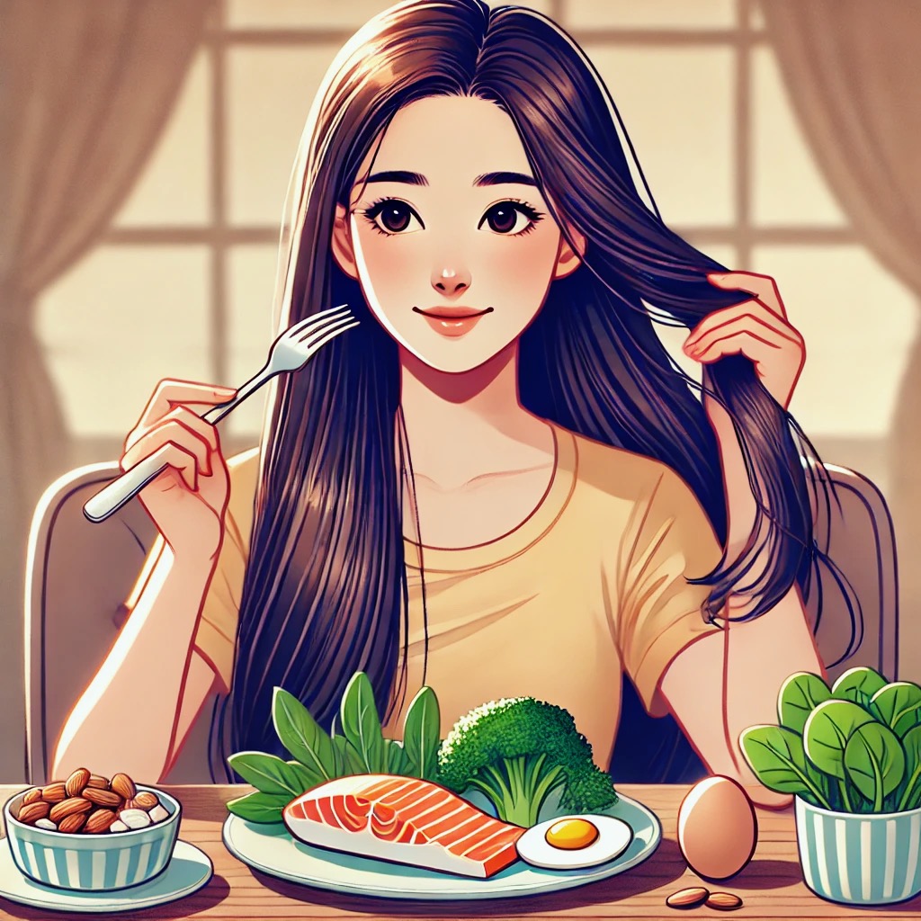✔ 단백질, 비오틴, 철분, 오메가-3가 풍부한 음식을 섭취하여 모발 건강 유지