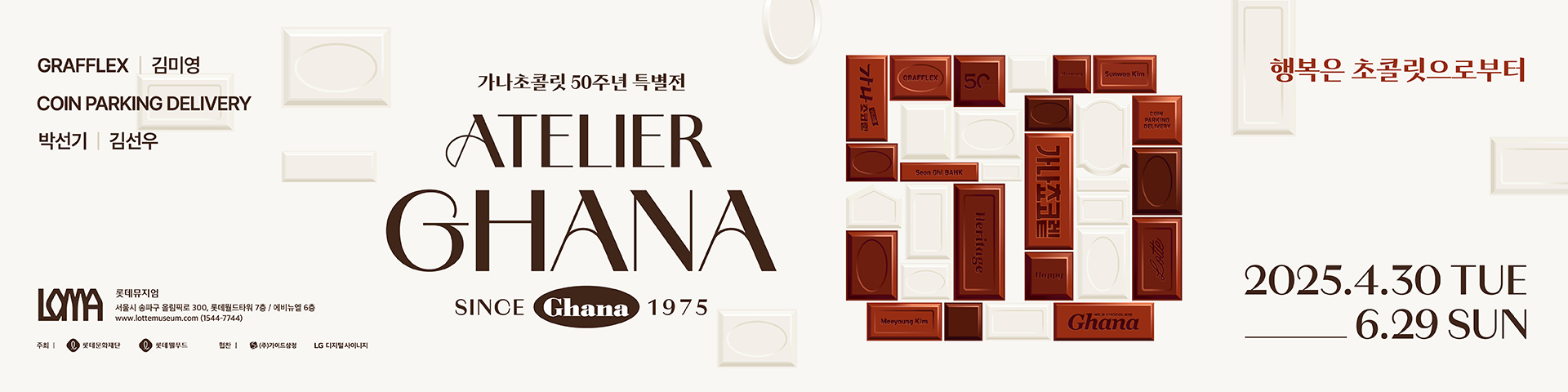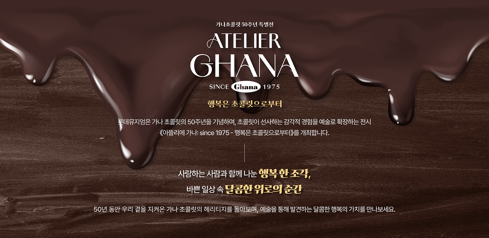 롯데뮤지엄에서 열리는 가나초콜릿 50주년 기념 전시 <아뜰리에 가나: since 1975 – 행복은 초콜릿으로부터>의 예매가 시작되었습니다.