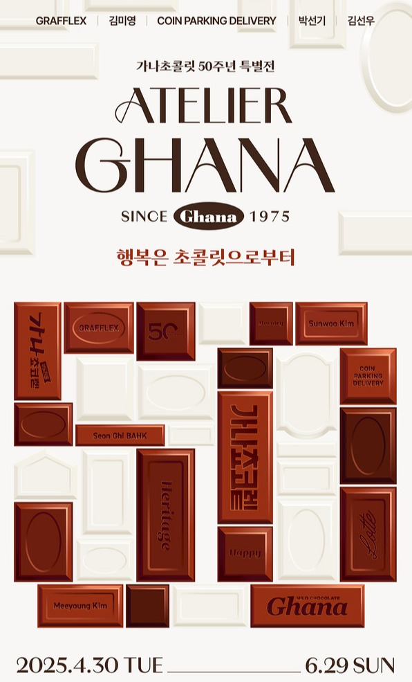 | 2025 서울 실내 전시 추천: 가나 초콜릿 50주년 아뜰리에 가나 오픈! (1) | 2025.03.28 |